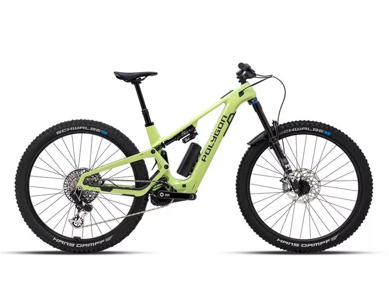 A karbon ACX e-trail váz a Polygon saját IFS (Independent Floating Suspension) rendszerét használja, amely optimalizált rugózási karakterisztikát biztosít mászáskor és lejtőkön is. A 160 mm-es első teleszkópvilla és a 140 mm körüli hátsó rugóút kiváló tapadást és stabilitást ad technikás terepen.