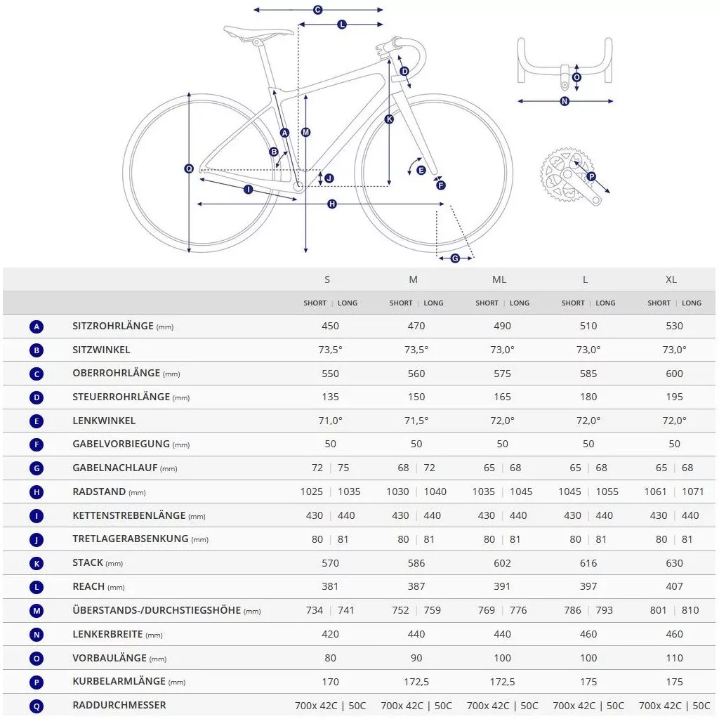 Az ALUXX alumínium váz modern gravel geometriával készült: hosszabb reach és alacsonyabb középrész biztosítja a stabilitást rossz minőségű utakon is. A flip-chip hátsó papucs segítségével állítható a tengelytáv és a gumiférőhely, így a bringa könnyen a felhasználási módhoz igazítható.